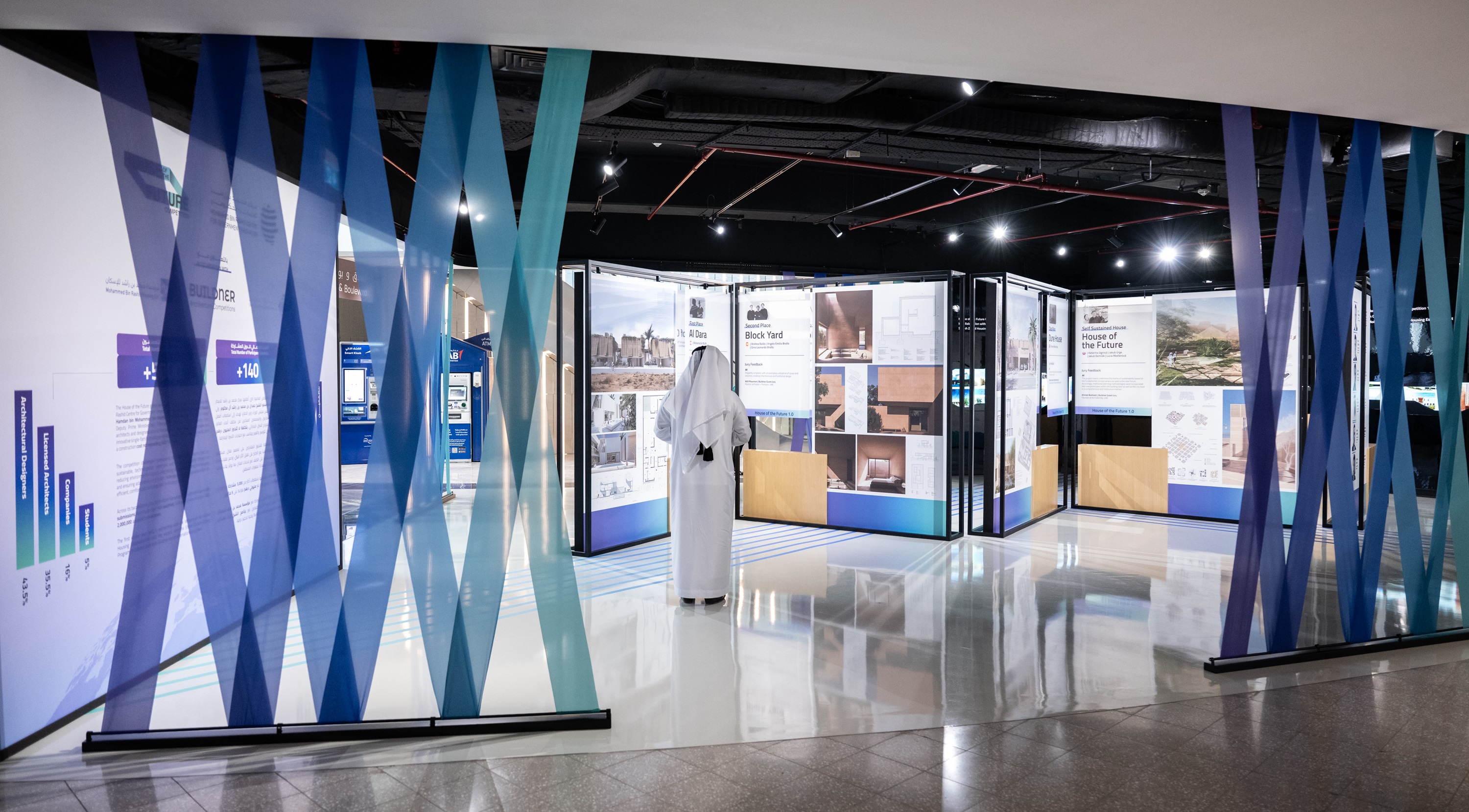 ويعرض المعرض نخبة من النماذج المبتكرة المتوَّجة في نسختي مسابقة "منزل المستقبل"، التي أطلقها المركز بالشراكة مع برنامج الشيخ زايد للإسكان ومنصة "بلدنز"، إلى جانب المشاريع الفائزة في النسخة الأولى من المسابقة التي نُظّمت بالتعاون مع مؤسسة محمد بن راشد للإسكان، والتي تهدف إلى إبراز تصاميم مبتكرة لمنزل إماراتي مستدام ومرن، قابل للتوسع والتكيف مع البيئات المتنوعة، ضمن تكلفة لا تتجاوز 800 ألف درهم، بما يعزز مكانة الإمارات وجهة عالمية رائدة في ابتكار حلول الإسكان المستقبلي.