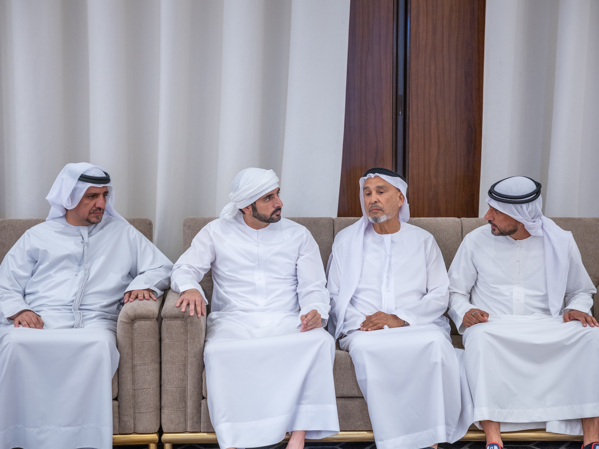 قدّم سموّ الشيخ حمدان بن محمد بن راشد آل مكتوم، ولي عهد دبي، نائب رئيس مجلس الوزراء وزير الدفاع، رئيس المجلس التنفيذي لإمارة دبي، اليوم(الجمعة)، واجب العزاء في وفاة عبدالمجيد أحمد قاسم صديقي، وذلك خلال زيارة سموّه لمجلس العزاء في دبي.