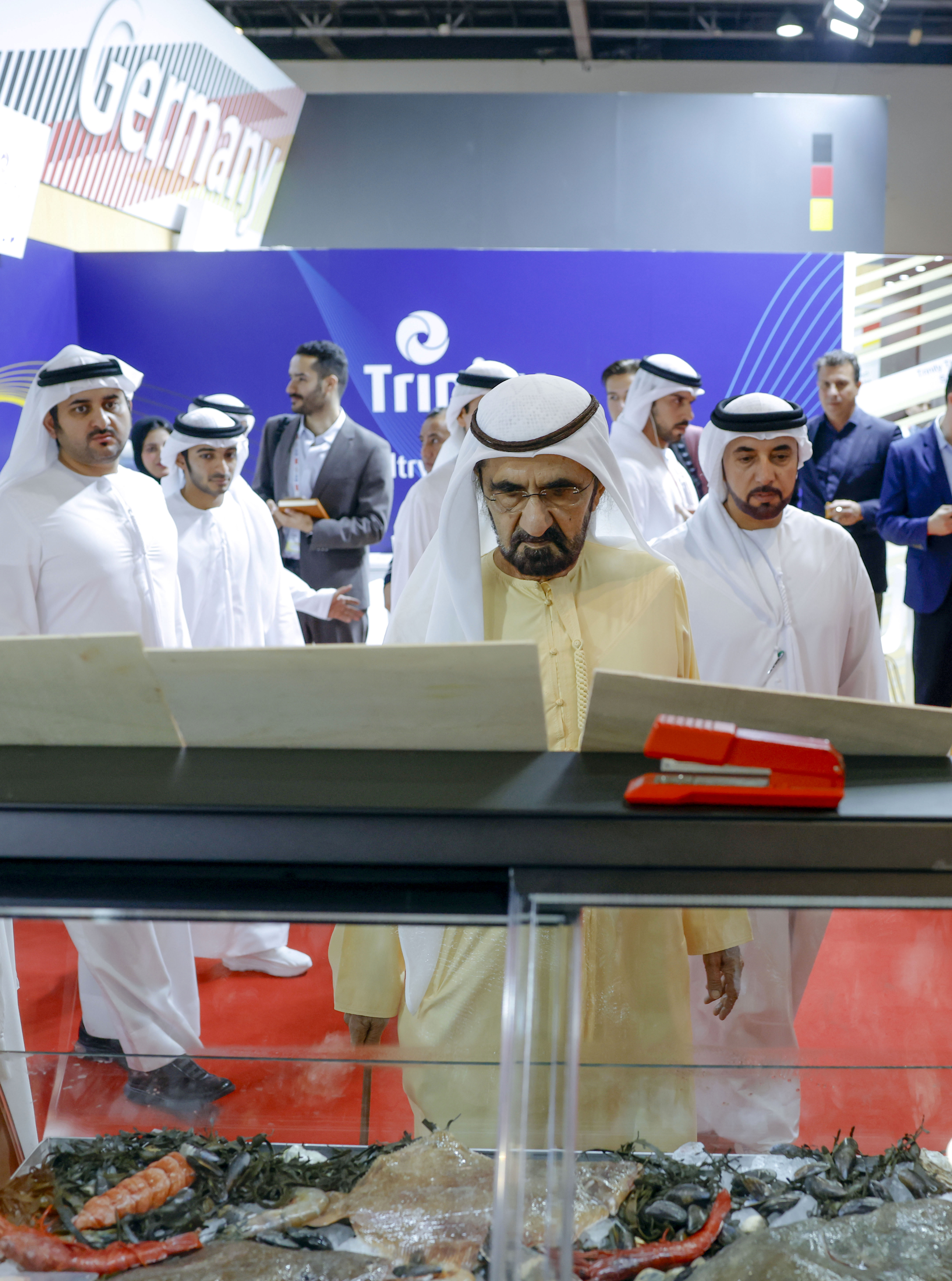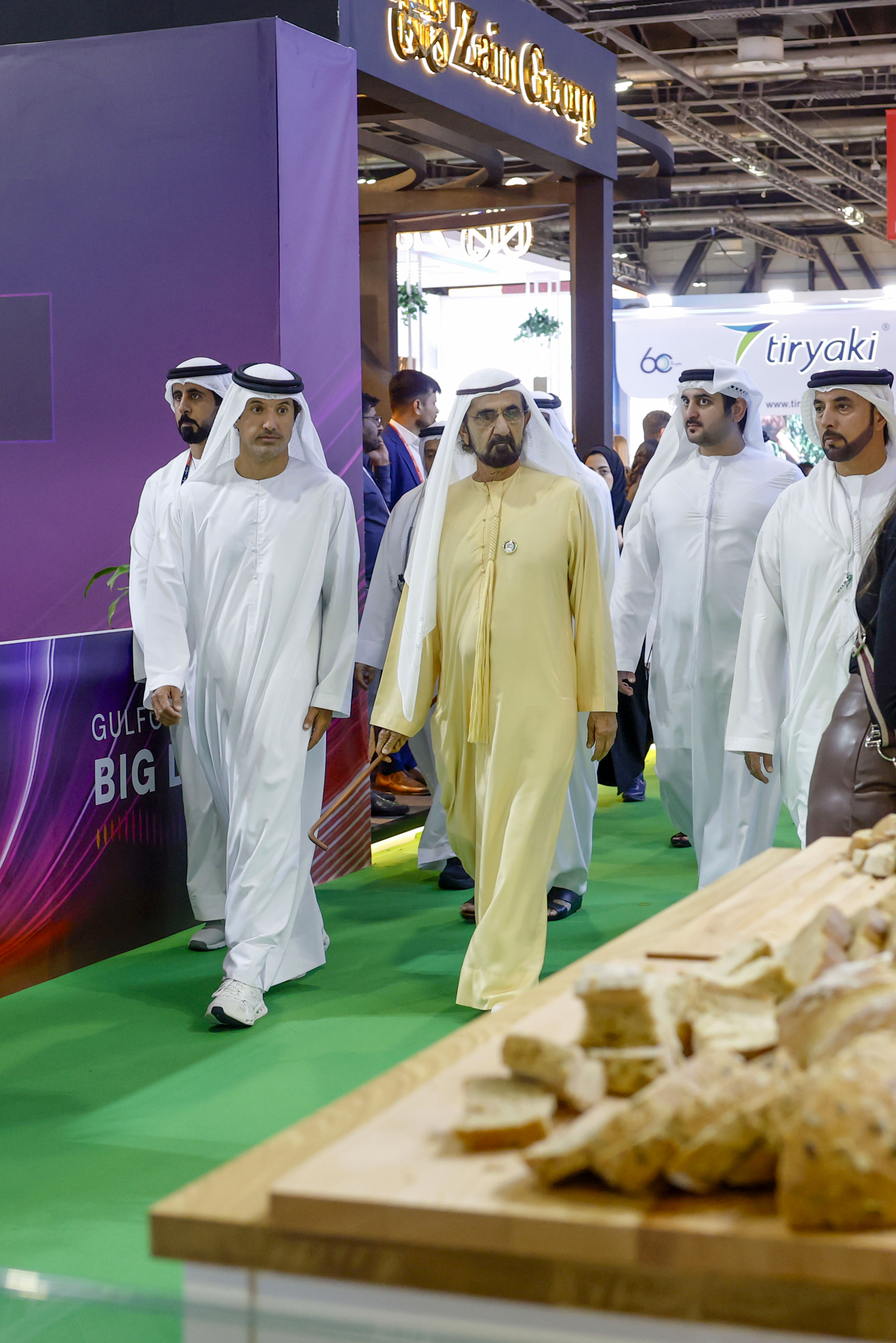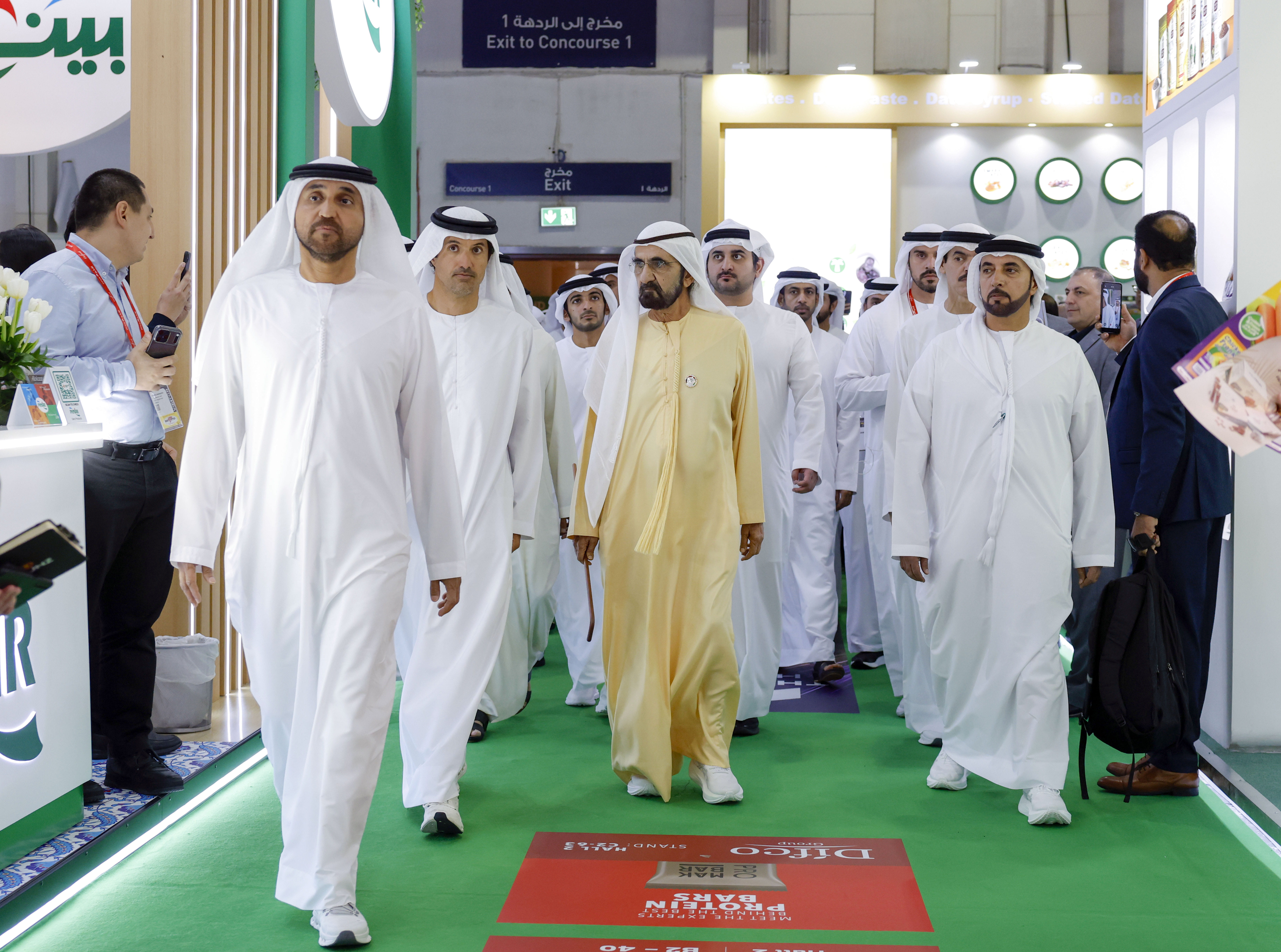 وحرص صاحب السمو الشيخ محمد بن راشد آل مكتوم، خلال جولته التي رافقه خلالها، سموّ الشيخ مكتوم بن محمد بن راشد آل مكتوم، النائب الأول لحاكم دبي، نائب رئيس مجلس الوزراء وزير المالية، وسمو الشيخ أحمد بن سعيد آل مكتوم، رئيس هيئة دبي للطيران المدني، الرئيس الأعلى الرئيس التنفيذي لطيران الإمارات والمجموعة، ومعالي هلال سعيد المرّي، المدير العام لسلطة مركز دبي التجاري العالمي ودائرة الاقتصاد والسياحة في دبي، على تفقّد عدد من أجنحة الدول والشركات المشاركة، حيث اطّلع على أحدث ما تقدّمه من منتجات غذائية وحلول مبتكرة وتقنيات حديثة تدعم تطوير صناعة الغذاء وتعزيز استدامتها.