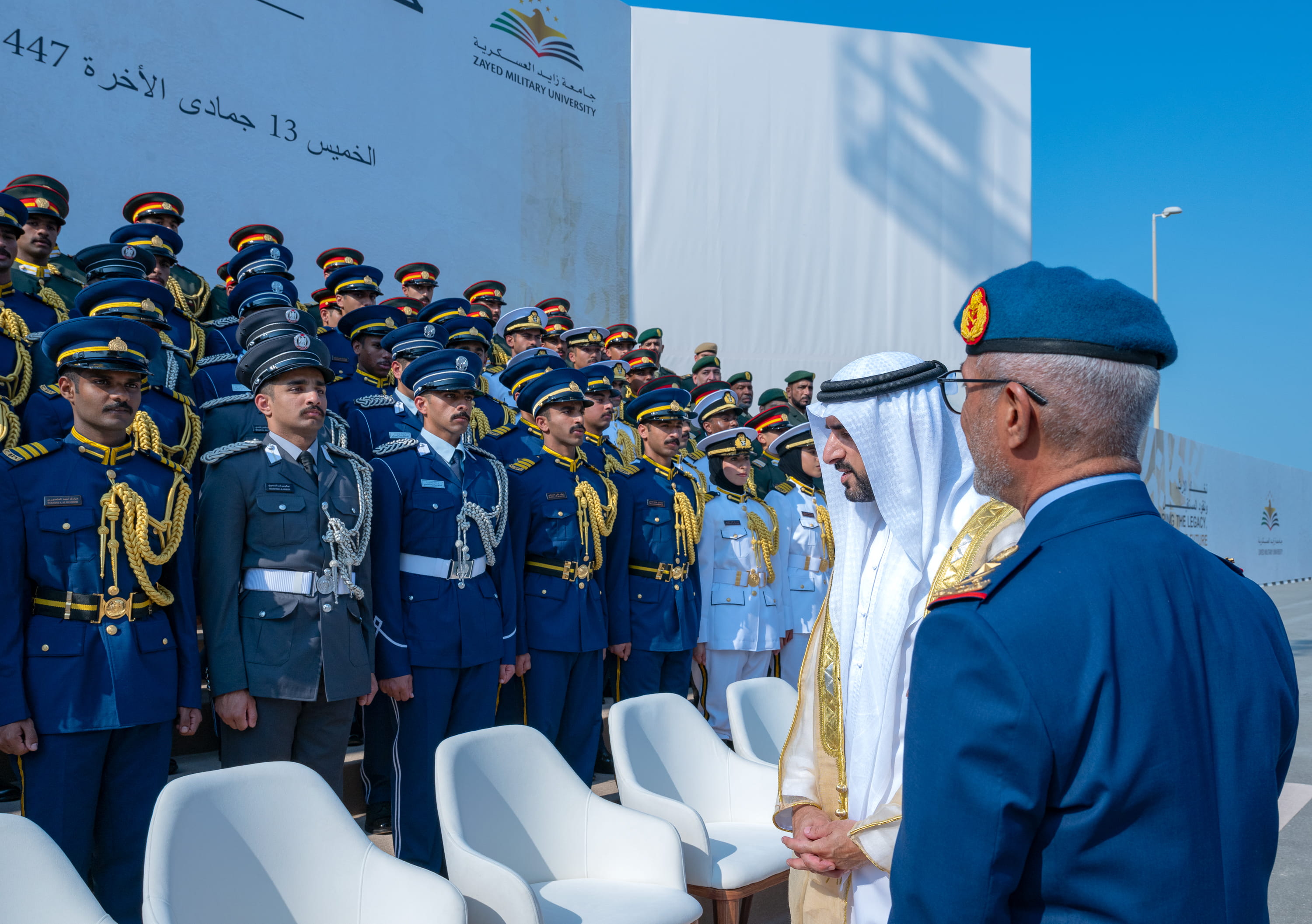 His Highness urged the graduates to embody discipline and dedication in serving the nation, applying their skills and expertise to strengthen the UAE’s foundations of progress and support its development journey under the leadership of His Highness Sheikh Mohamed bin Zayed Al Nahyan, President of the UAE. He called on them to remain at the forefront of service in the Armed Forces, upholding the UAE’s values and its commitment to promoting peace and reinforcing global security and stability.