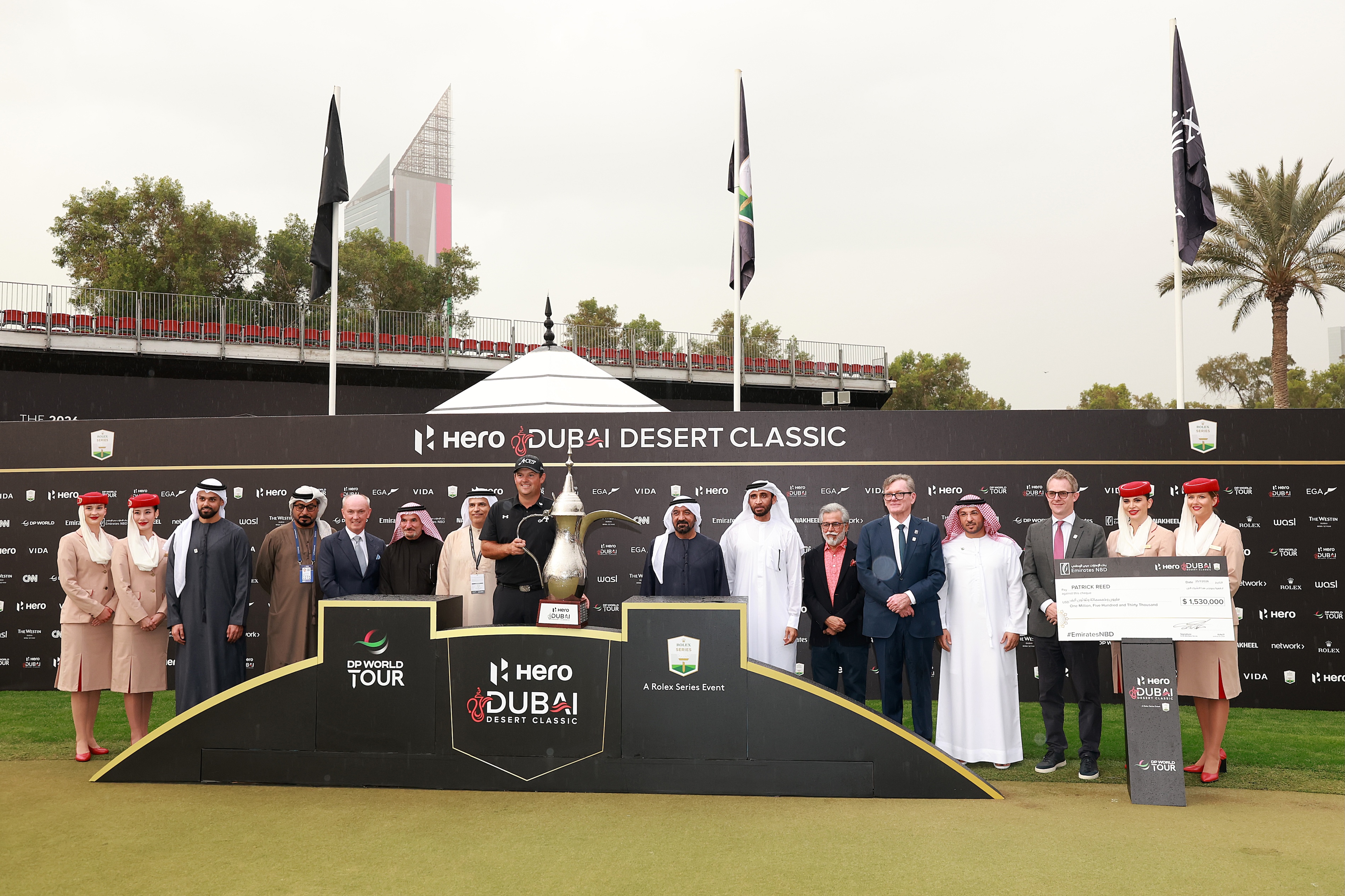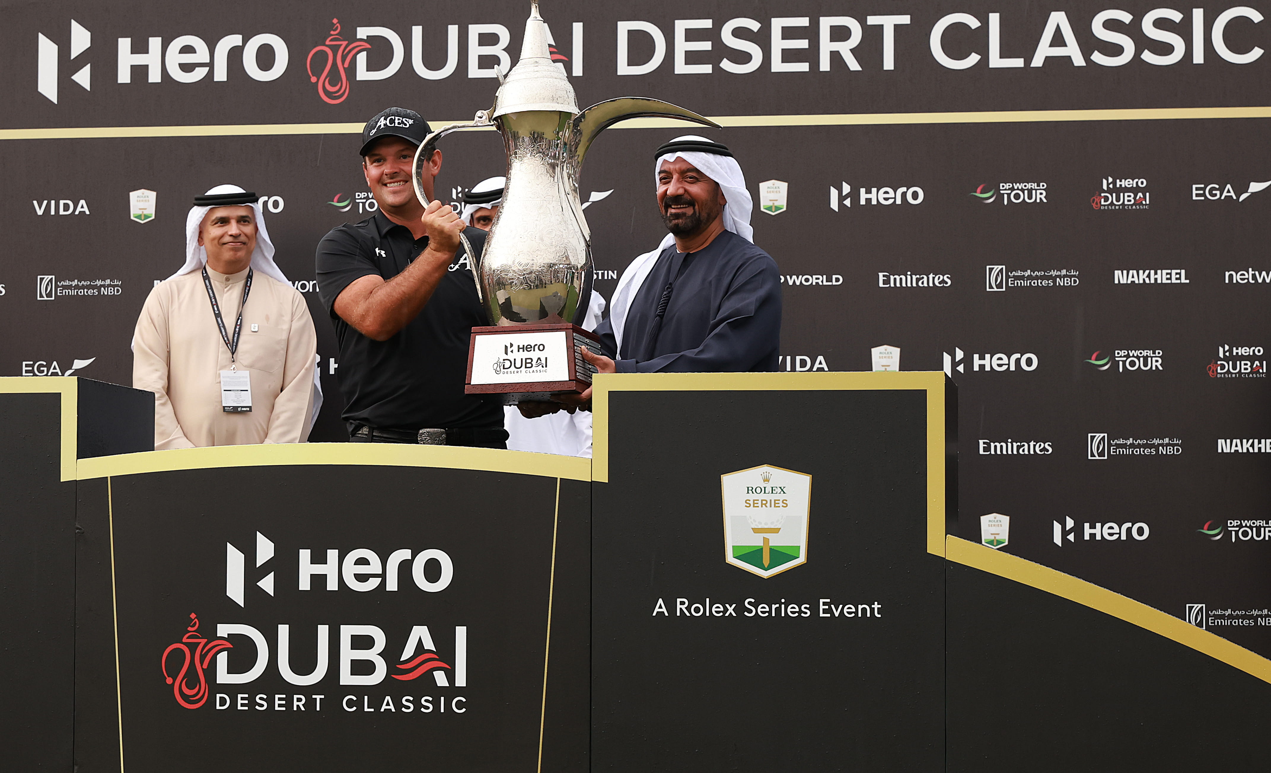 : His Highness Sheikh Ahmed bin Saeed Al Maktoum, President of the Dubai Civil Aviation Authority, Chairman of Dubai Airports, and Chairman and Chief Executive of Emirates Airline and Group, presented the prestigious Dallah Trophy to Patrick Reed in front of a delighted crowd at Emirates Golf Club as the American claimed the fourth DP World Tour title of his career with a composed four-shot victory at the 2026 Hero Dubai Desert Classic.