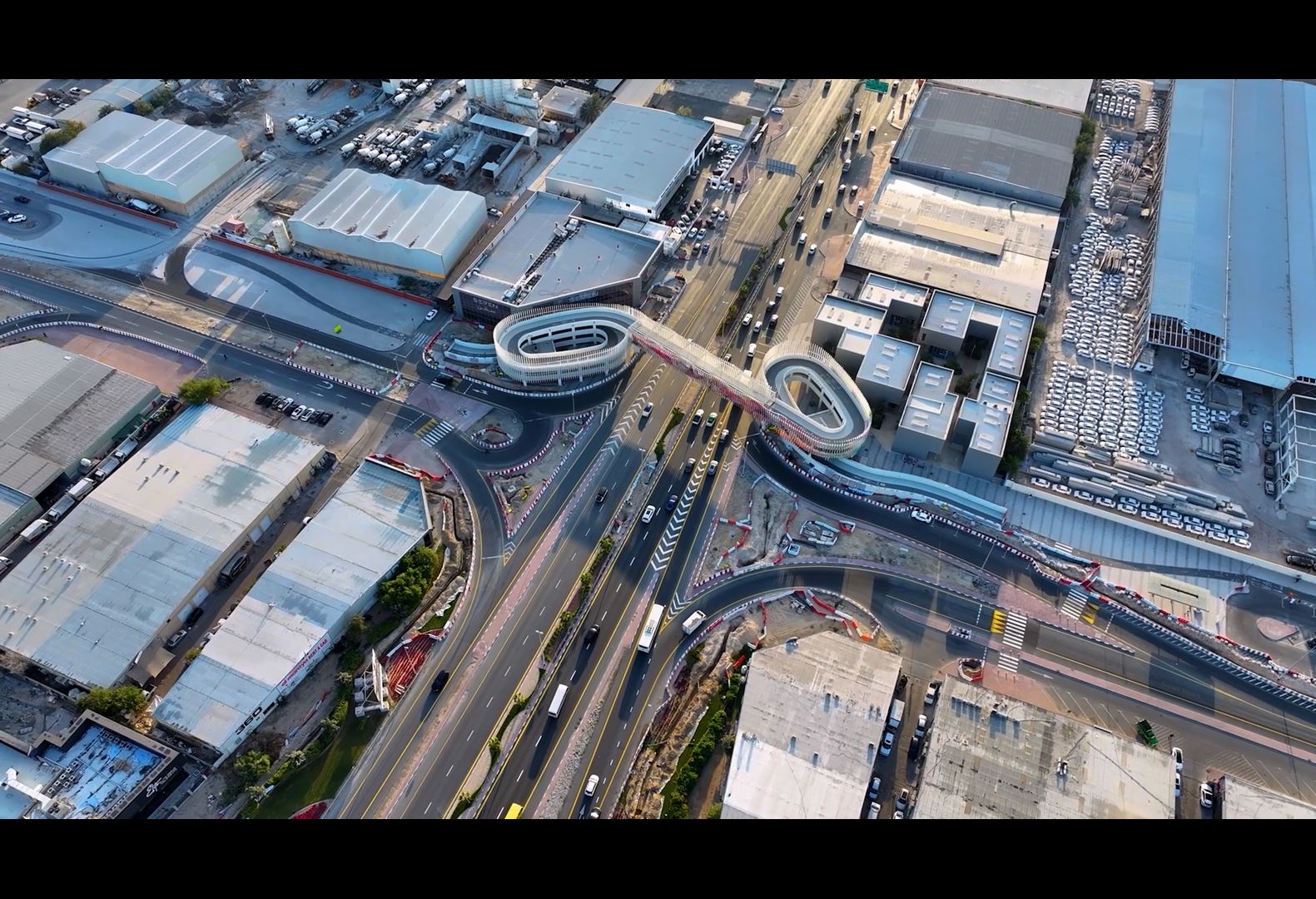 Both bridges feature distinctive architectural designs inspired by their surrounding environment. The bridge over Sheikh Zayed Road expresses the concept of connectivity through interwoven lines, while its open structural form enhances visual integration with the surrounding area and nearby towers. In contrast, the bridge over Al Khail Road draws on the interplay of sunlight, translated into flowing lines that create a sense of calm for pedestrians and cyclists, away from the noise of traffic. The design also takes into account the sun’s path, integrating natural light into the overall architectural composition.